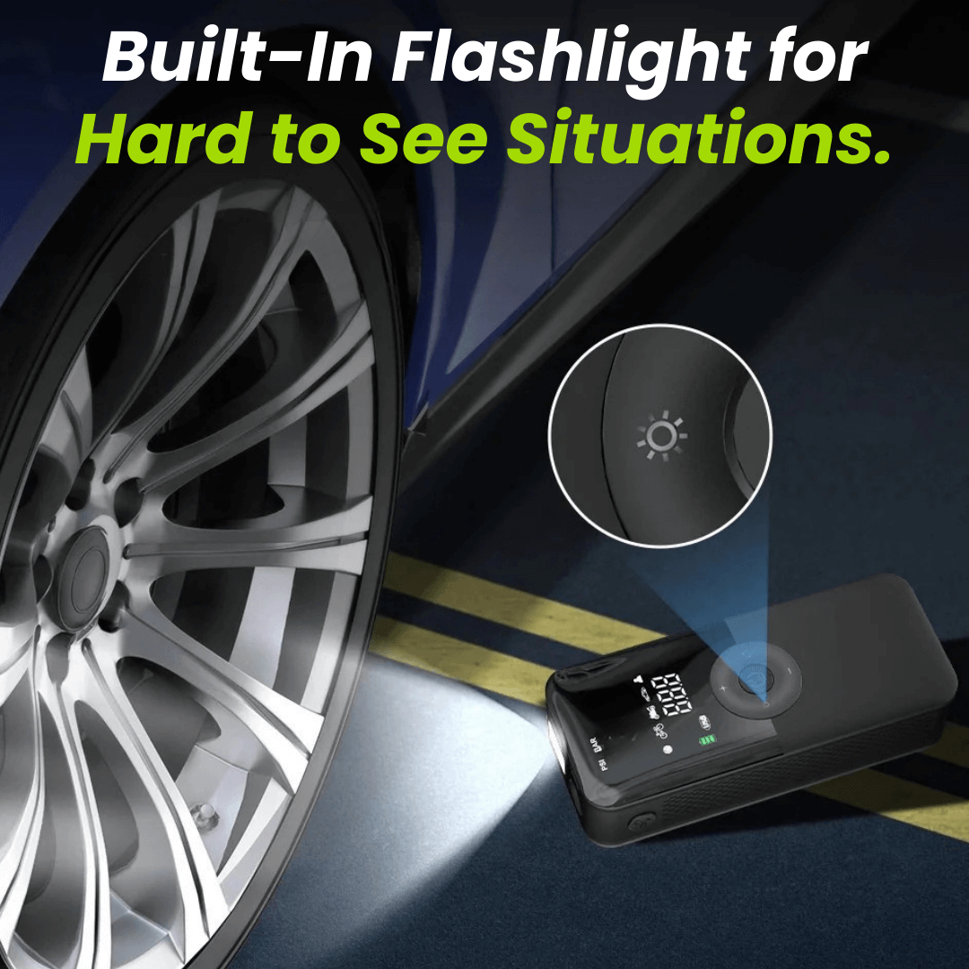 Be your own backup. With 150 PSI and auto shut-off, our smart pump gives you full control—no cables, no gas stations, no stress. Just press, inflate, and drive on.
