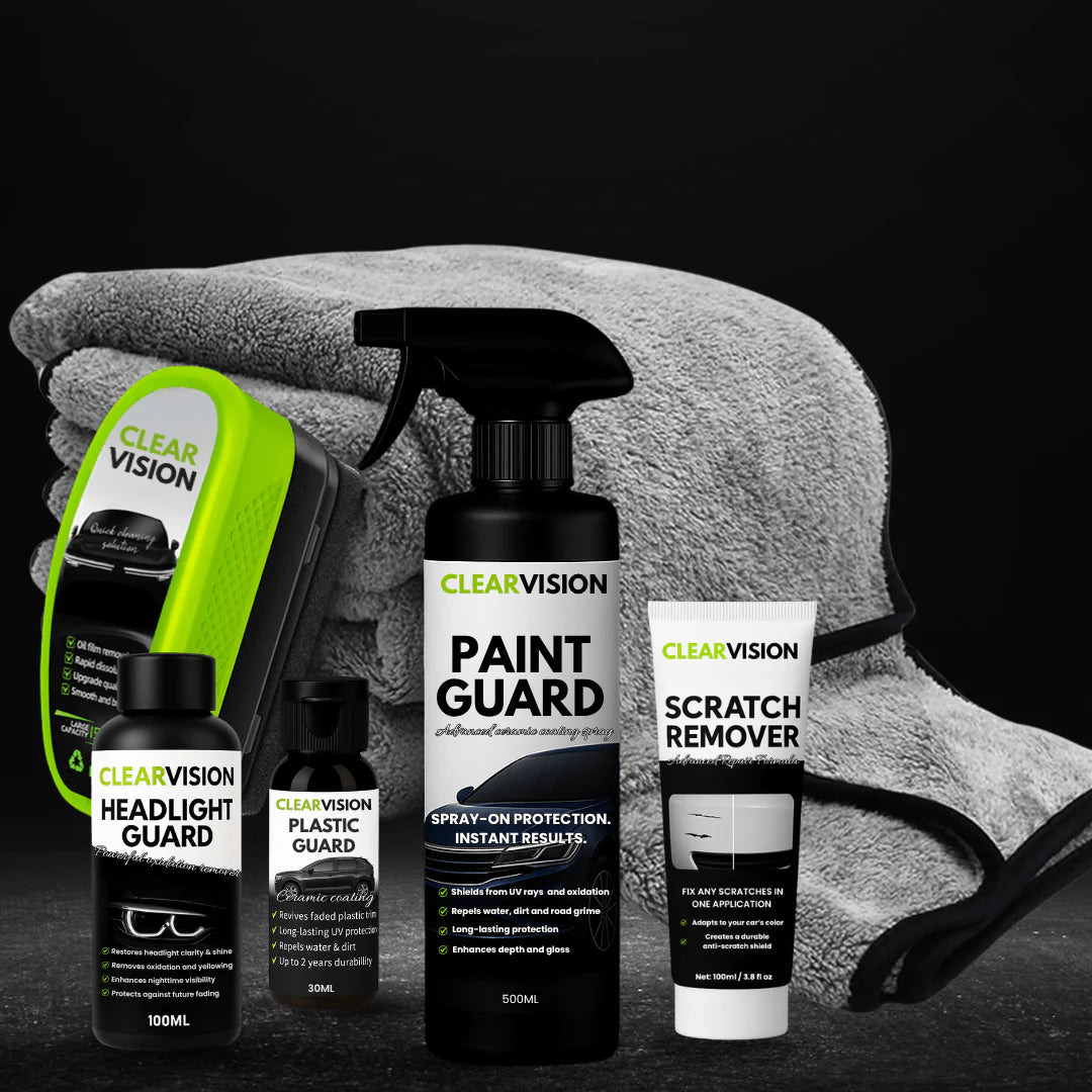 You’ll get 5 of our best-selling exterior care products: ClearVision™, ScratchRemover, HeadlightGuard, PlasticGuard, PaintGuard – plus the ClearDry microfiber towel (worth A$119.80) completely free.