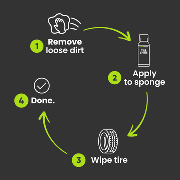 Shields tires from UV, dirt, and ozone — preventing cracking and keeping them looking fresh for weeks.