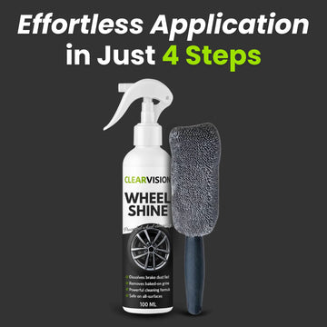 ClearVision™ WheelShine restores that clean, like-new finish. It dissolves dirt and surface rust, brings back a deep shine, and helps keep your wheels cleaner for longer. No harsh scrubbing. No damage. Just fast, effective results.